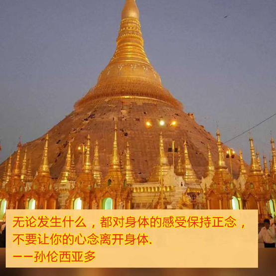 孙伦师尊说:不是这样,这样好像你得到很多的功德,但是你没法走在涅槃的路上。孙伦师尊就教他怎么样做:就是觉知每一个触。就是我们在这里学的。那时候因为孙伦师尊是阿拉汉,他用阿拉汉在心里的能力,在YangLong西亚多在练习的时候,用阿拉汉的能力,