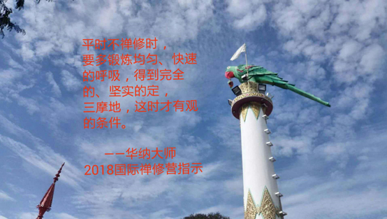 他说:吸一口气,念「阿拉汉」再一口气念「布哆」,忆念佛陀好的特质。每吸一口说一下,每吸一口说一下。