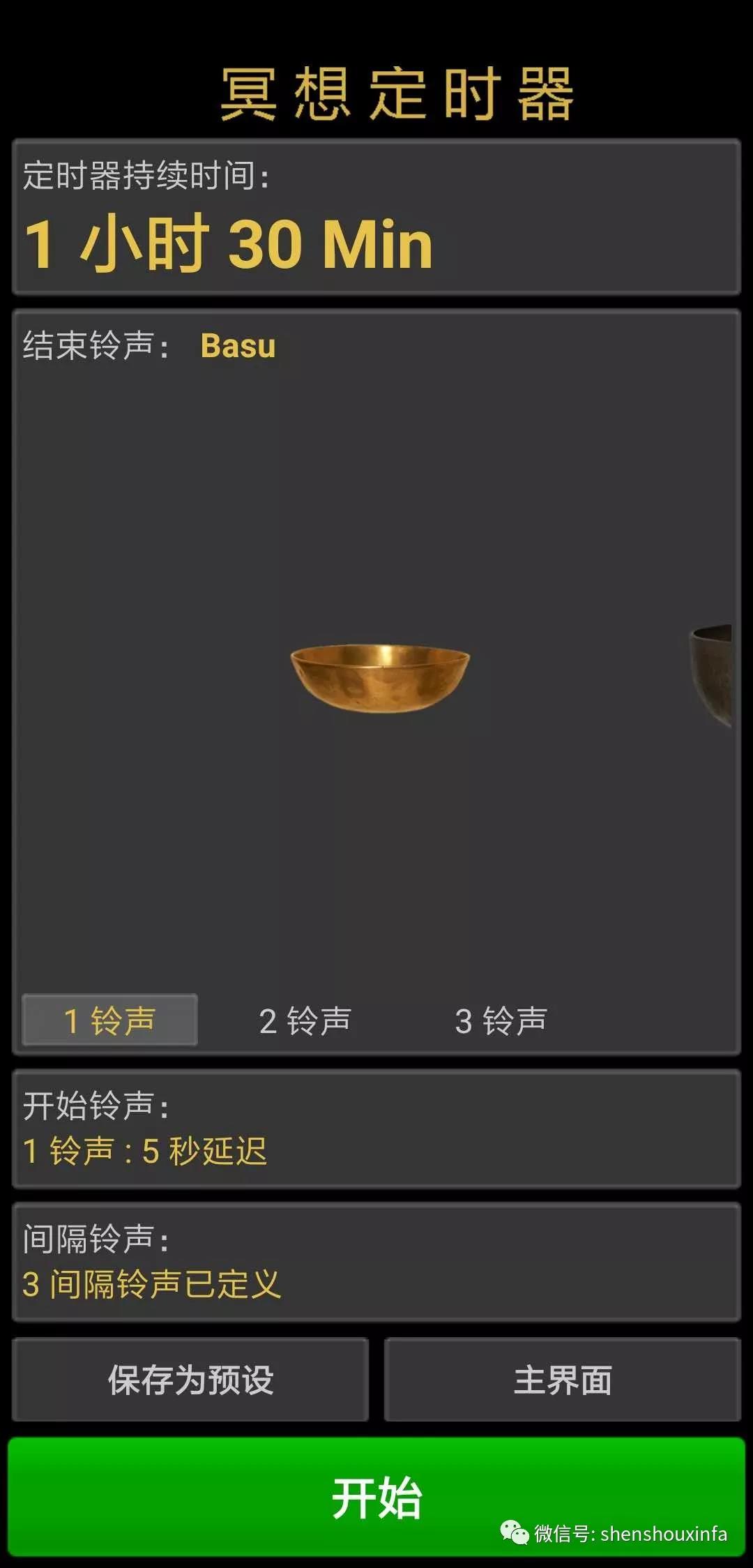 筛选过很多软件后,目前,“冥想定时器”基本符合要求,软件设置简单,支持分段计时,内置的几款声音也够用,木鱼和引磬都很好听,唯一的遗憾是软件版本太旧,在新版本的安卓上,保存定时方案功能失效,否则就完美了。这App好像也有新版,但新版完全跑偏,根本就没法用了。